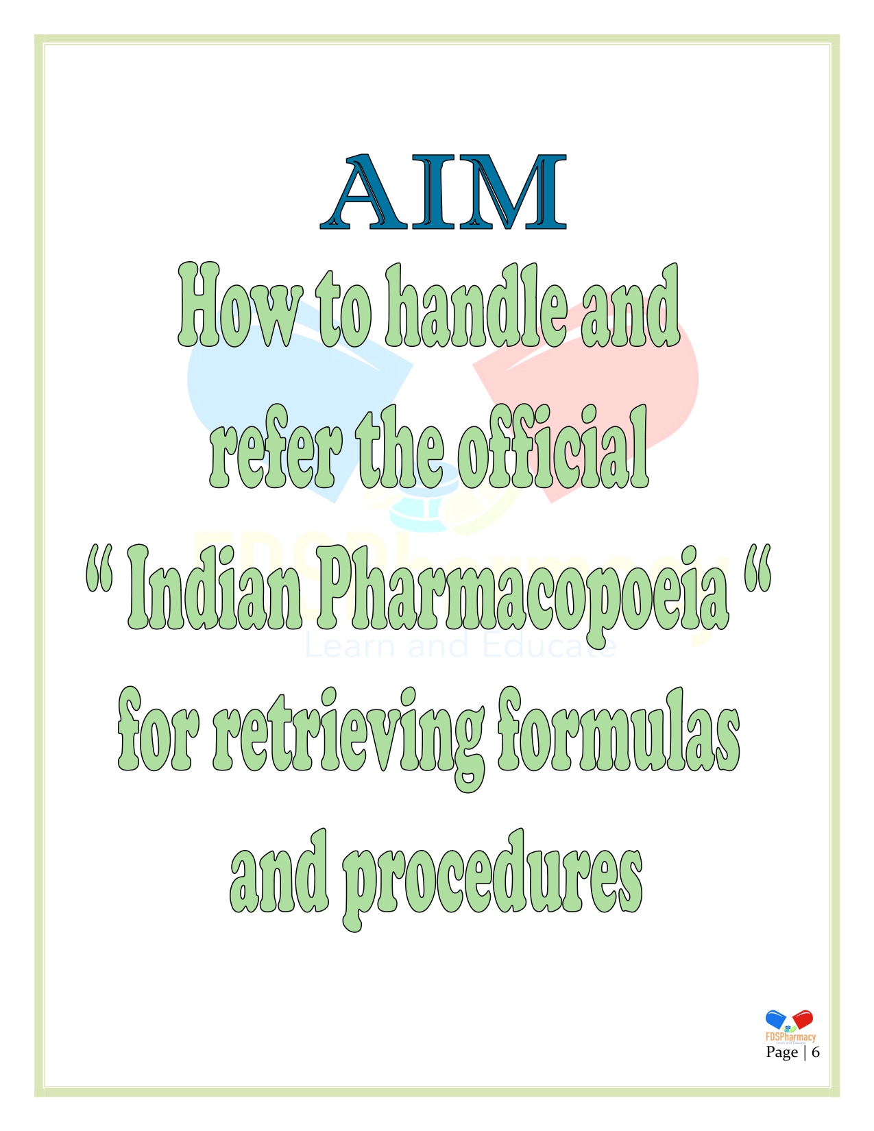 Practical 1 : How to handle and refer the official “ Indian Pharmacopoeia “ for retrieving formulas and procedures