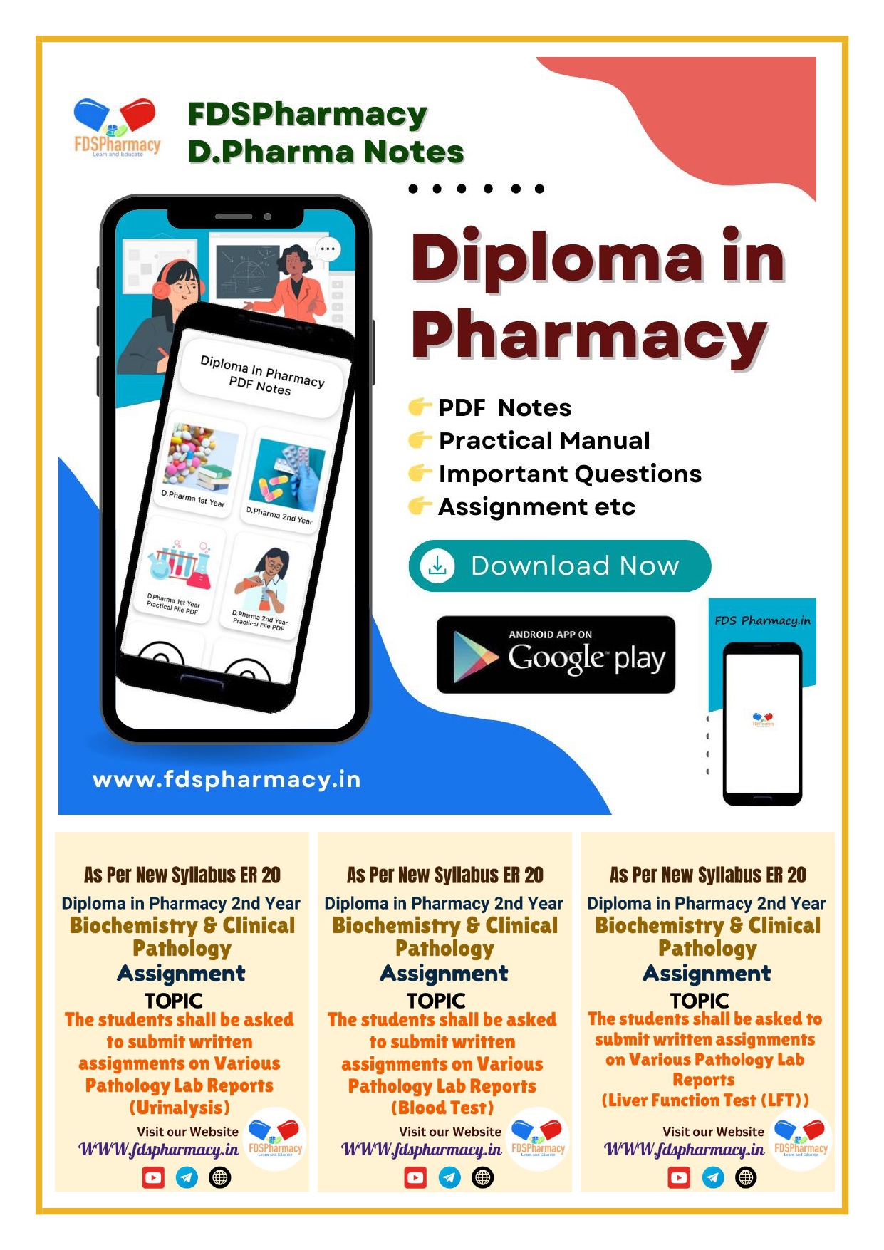 Biochemistry And clinical Pathology Assignment, D.Pharmacy 2nd Year Assignment
